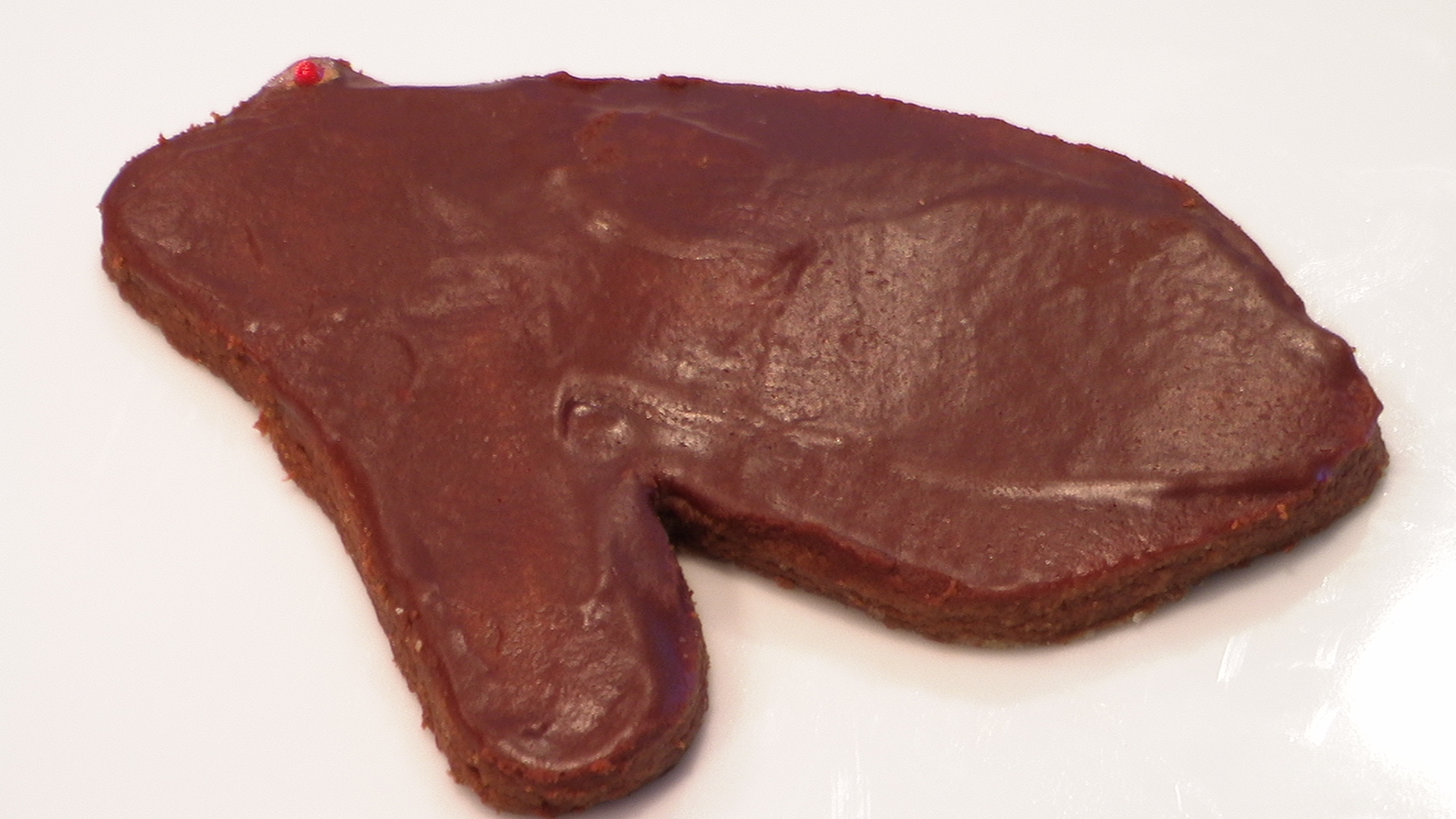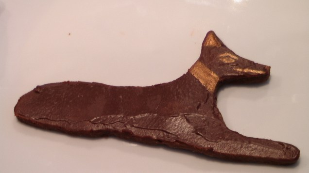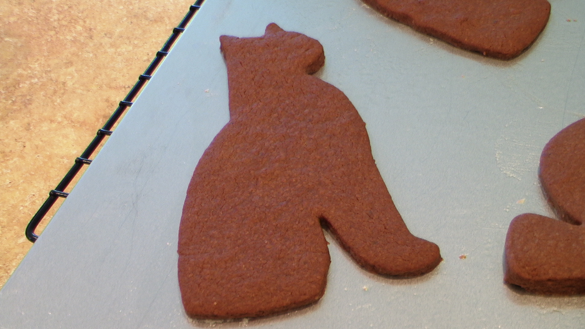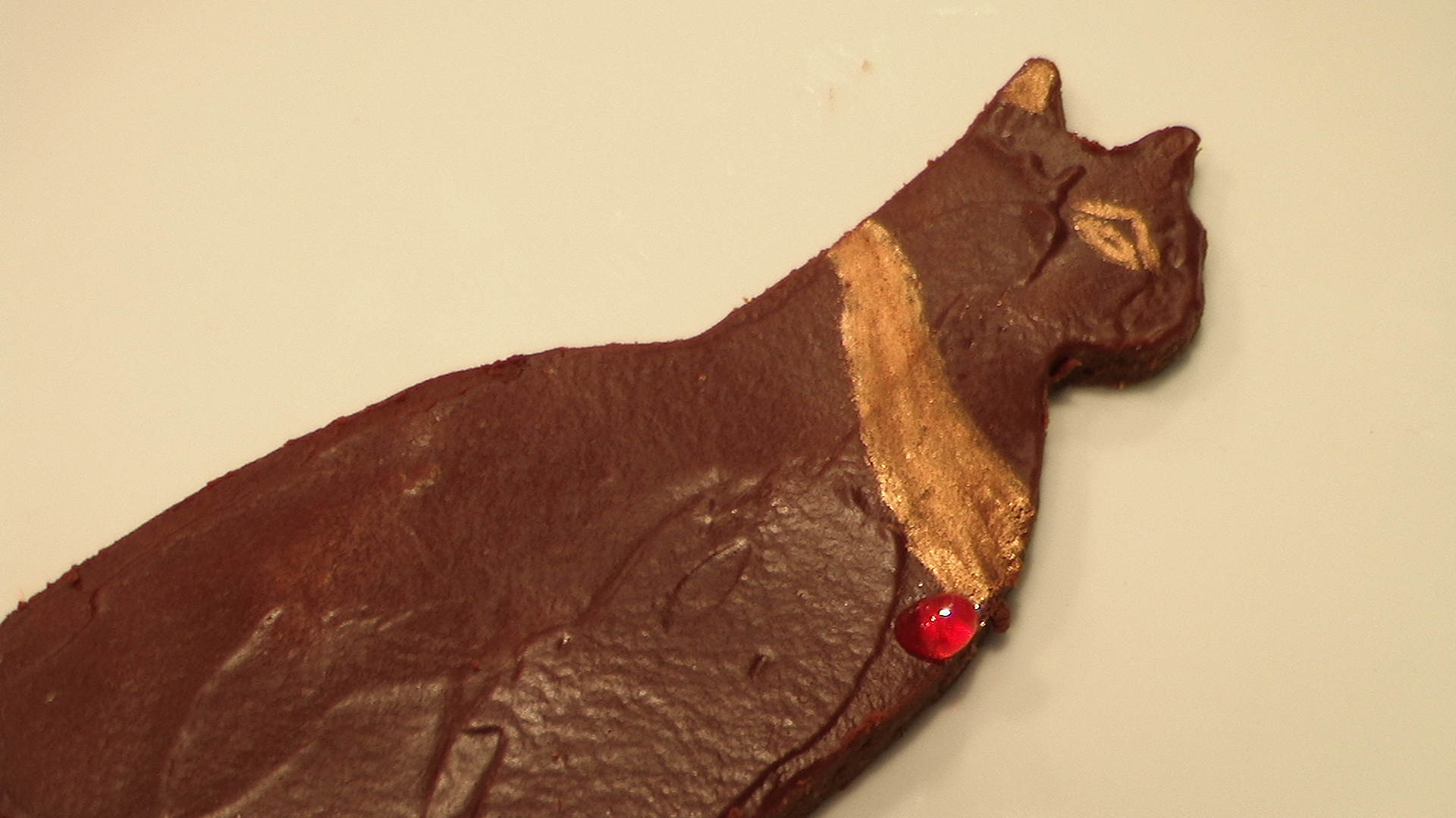 Although dusting with confectioners’ sugar is an easy decor option, I chose to decorate these cookies with a thin spread of bittersweet chocolate glaze. Once the glaze set up firmly, I used gold edible luster dust and red piping gel to create design accents relative to the cookie shape and theme of Ancient Egypt. If you are located in a warm and humid environment, it may be necessary to give the decorated cookies a quick blast in the refrigerator to firm the glaze up more quickly. No matter what decor you choose, these chocolate butter cookies are sure to be as fun to make and good to eat as they look…