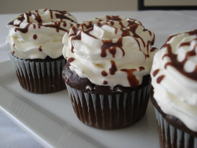 So with that said I stuck with the light icing but played up the light fluffiness with a hit of chocolate glaze across the top to add shine and chic for presentation. The title itself brings to mind a haunting or Halloweenesque type cake but the darkness of the title doesn’t really relate to any particular ghoulish holiday. Rather, the rich chocolate cake hidden beneath the fluffy Chantily icing and drippy chocolate glaze is only haunting of the waistline when you eat the whole pan like I am tempted to do as they go down so quick and easily. These cupcakes are sooo simple to prepare as with most cupcakes. You could assemble mini cakes in much the same way but you get more servings from using the formula to prepare cupcakes not to mention the cupcake method is a HUGE time saver over cake preparation. It’s easier to serve the cupcakes at a party or as the perfect crowd pleasing favor. I used them as a welcoming treat for relatives staying with me on vacation. Since it is hard to juggle work, blog, various personal endeavors, family, cats, well cats are my family… I must keep this short and sweet today and leave you to baking some Chocolate goodness of your own. Enjoy!!!