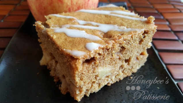 The most common type of coffee cake topping is a simple two ingredient glaze made of powdered sugar and milk, which gets drizzled on top once cooled. As easy as this icing is to make, finding a healthier alternative wouldn’t be. Since there is no natural equivalent for processed powdered sugar, I needed an alternative. With no other natural sugars able to provide the same smooth glaze, I was honestly very tempted to just skip it. But as much as I wanted to, I knew I couldn’t just skip out on the topping altogether because an unadorned cake is plain and makes for a rather boring presentation. After a bit of trial and error, I remembered something that we used A LOT in culinary school…simple syrup. Just as its name suggests, simple syrup is created by dissolving sugar in water. Instead of the typical white, granulated sugar, I heated evaporated cane juice in the water for a cleaner syrup. I then beat the syrup into cream cheese for a smooth glaze that looks just like the original, but is a whole lot healthier and tastier. The rich and tangy cream cheese in the glaze is a perfect compliment to the sweet and tart apples and spicy cinnamon. Enjoy it for breakfast or to celebrate a beautiful fall afternoon. Coffee can be optional!