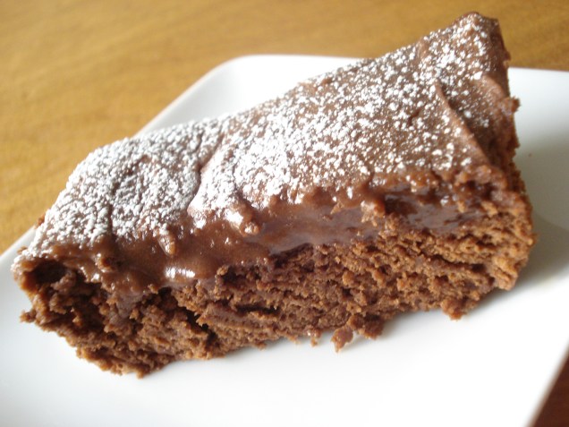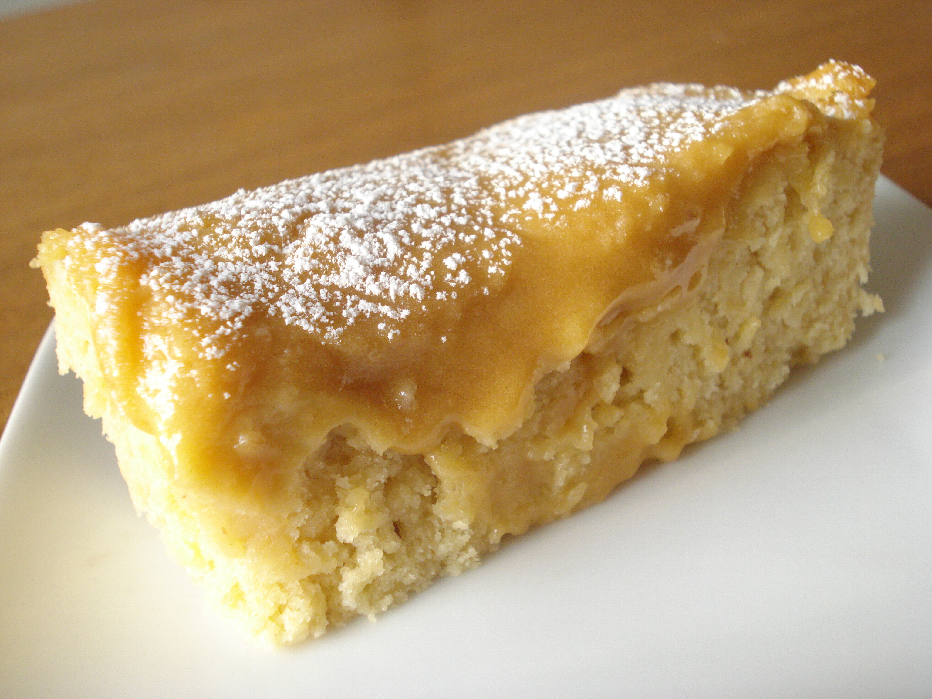 - Bake until exterior is golden and center of topping is just beginning to color, about 25 minutes. Note that the center will still jiggle slightly when the pan is shook so do not overbake. Cool in the pan at least 3 hours. Use the overhang of the parchment to lift the cake out of the pan. Dust the cake with confectioners’ sugar. Serve immediately. If the entire cake is not consumed, it can be refrigerated for 2 days